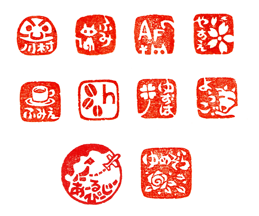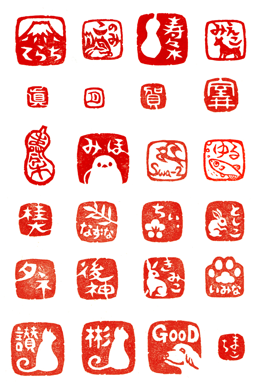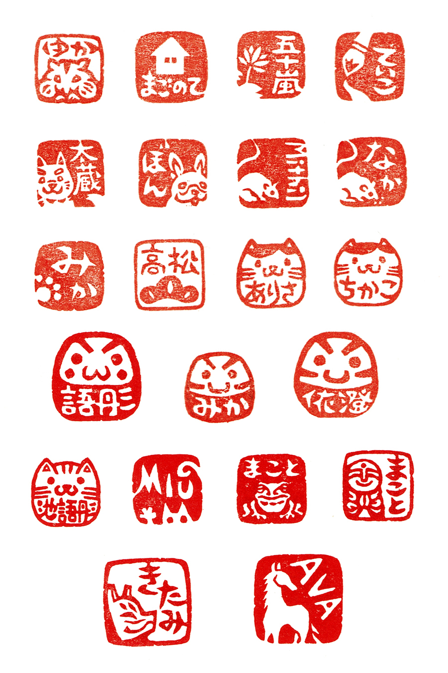 | 遮光器土偶のはんこ ハシビロコウのはんこ おばけカボチャのはんこ 犬のはんこ 羊のはんこ ユリのはんこ 縁麻 パンダのはんこ セキセイインコのはんこ 猫のはんこ 若葉のはんこ 肉球のはんこ 日本刀のはんこ ショートケーキのはんこ 猫のはんこ ![]() |