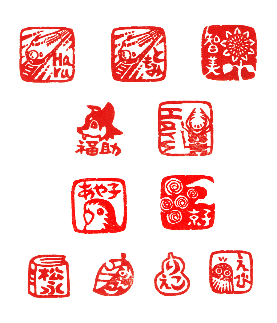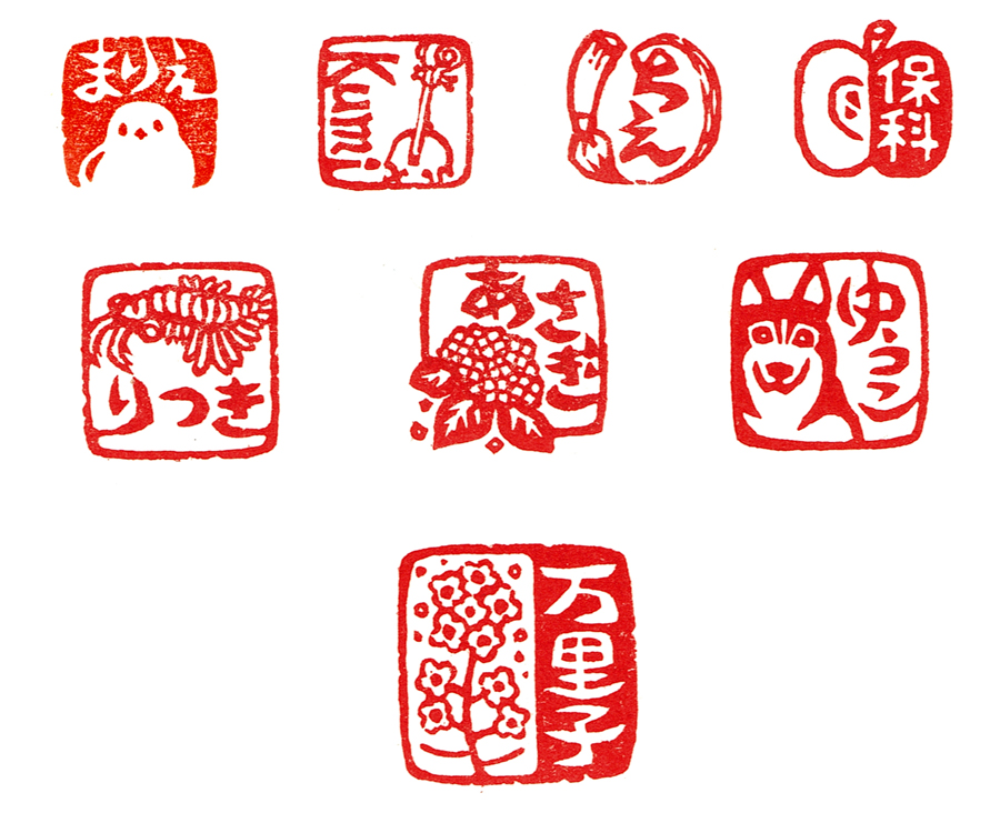 | アメフクラガエルのはんこ クジラのはんこ 三日月のはんこ 埴輪のはんこ おにぎりのはんこ シュモクザメのはんこ リクガメのはんこ 若葉のはんこ ![]() |